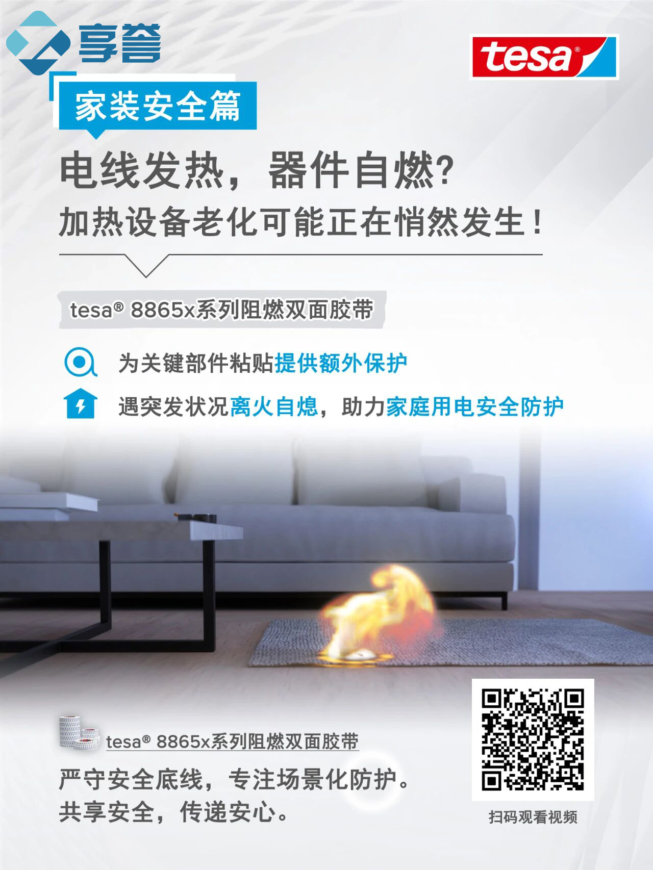 ????tesa® 8865x系列阻燃双面胶带通过UL94 VTM-0测试|离火自熄|多场景适用