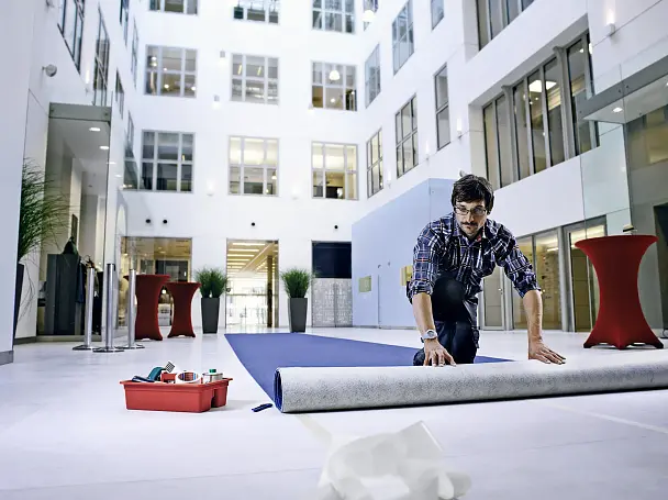 我们提供完整的双面胶带产品系列,适用于固定不同的地板材料,如地毯和 PVC。在写字楼或电梯等需要长期固定的场所,我们提供的胶带产品可替代胶水,实现长期可靠的固定。相比胶水,使用胶带解决方案在施工时无需固化、无异味,干净整洁,可显著提升效率。