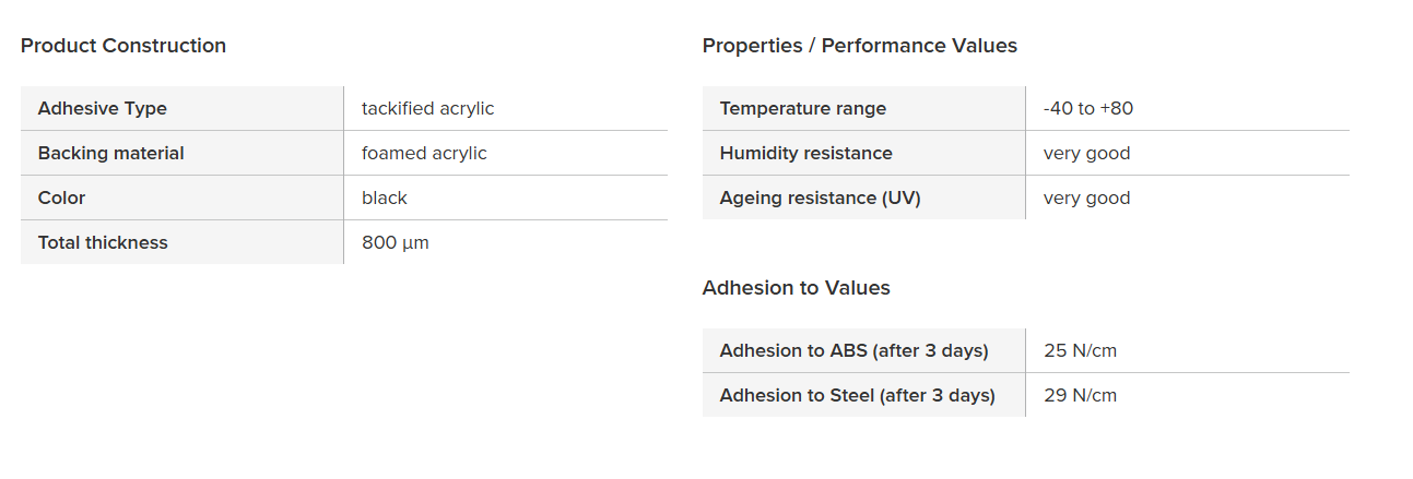 粘弹性丙烯酸泡沫芯,用于补偿粘合部件的不同热伸长率